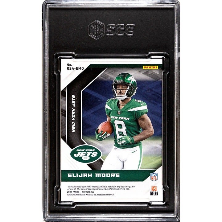 2021 Panini XR Elijah Moore* RC 4/15 Auto Swatch White Card #RSA-EMO SGC 10 Jets