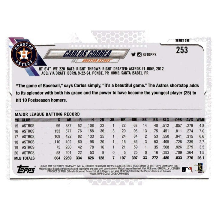 2021 Topps #253 Carlos Correa Yellow Bright parallel MLB Astros’ star shortstop!