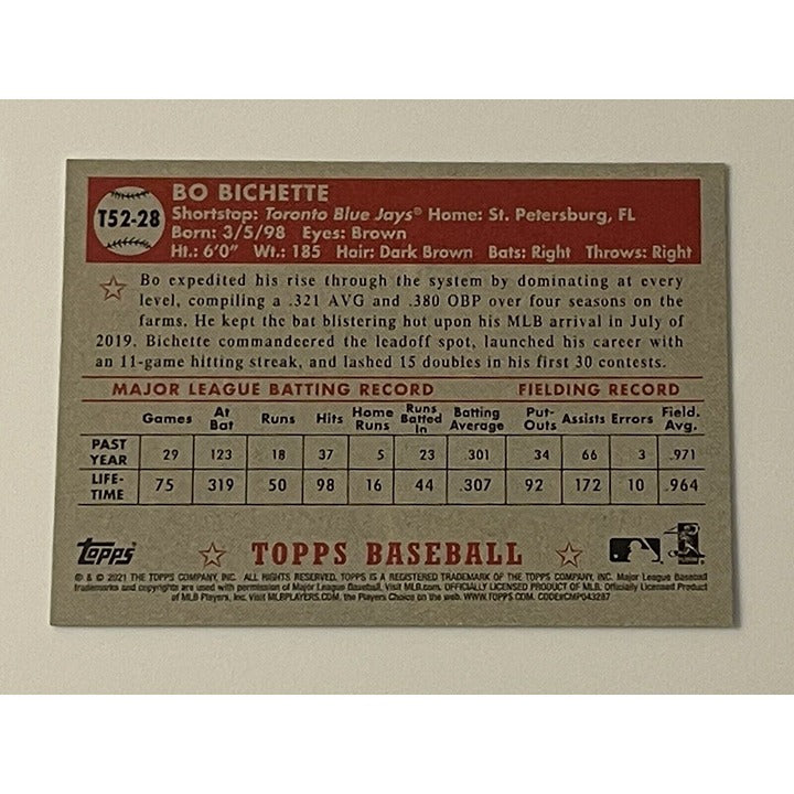 2021 Topps Baseball 1952 Topps Redux #T52-28 Bo Bichette* MLB Toronto Blue Jays*