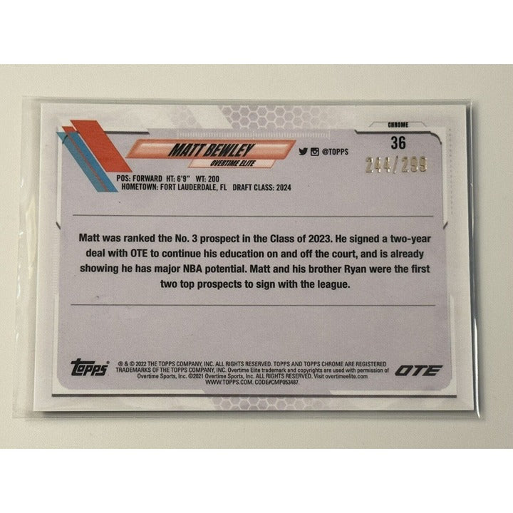 2021 Topps Chrome Overtime Elite 244/299 Matt Bewley RC OTE Rookie Chicago State