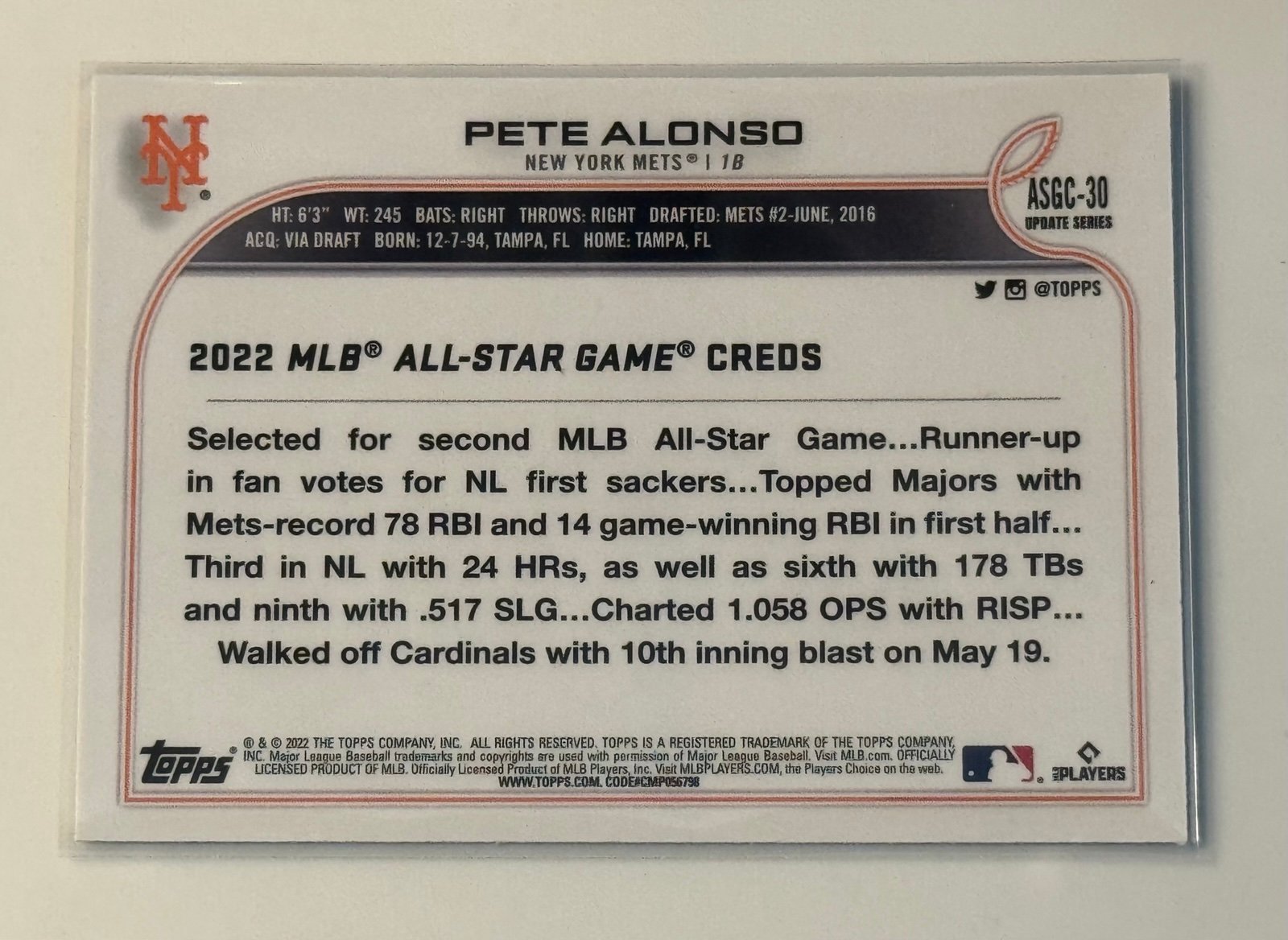 2021 Topps Chrome Pete Alonso “All‑Star Game” Update Refractor Parallel MLB Mets