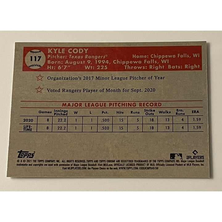 2021 TOPPS CHROME PLATINUM ANNIVERSARY RC KYLE CODY REFRACTOR #117 - MLB RANGERS