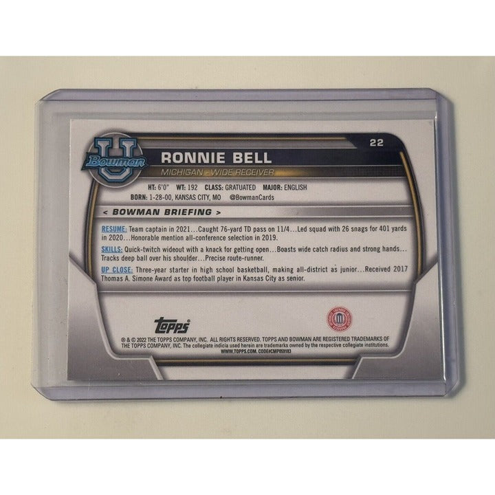 2022 1st Bowman University Chrome Ronnie Bell Card #22 - Michigan Champs/SF 49rs