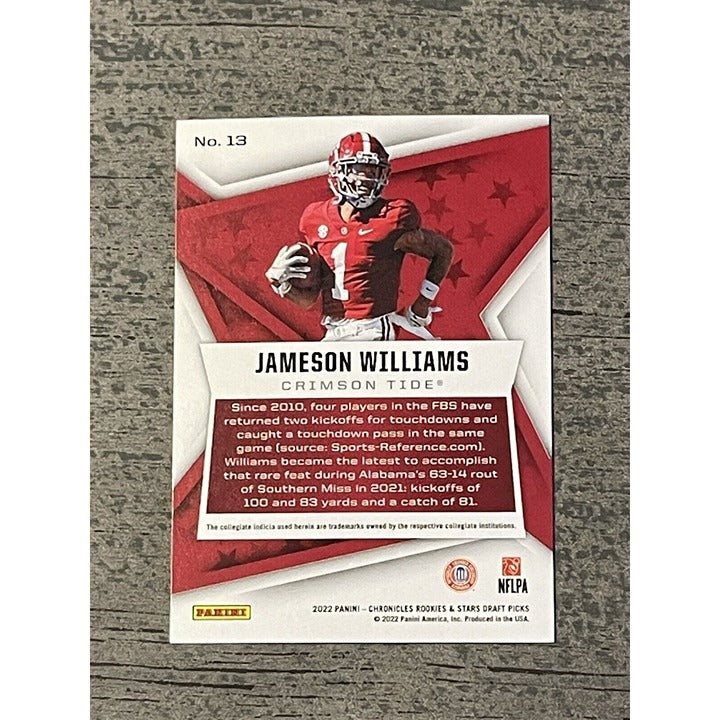 2022 Chronicles Draft Jameson Williams #13 Rookie & Stars RC Detroit Lions MINT!