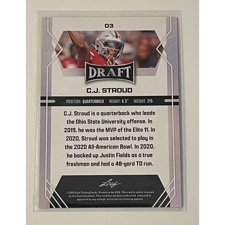 2022 Leaf Draft Football C.J. Stroud Red Parallel NFL AFC Houston Texans Card #3