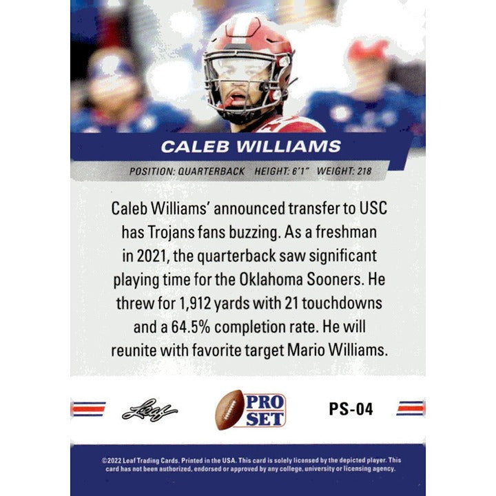 2022 Leaf Pro Set Draft Caleb Williams RC Rookie NFL Bears/Trojans Rookie PSA-04