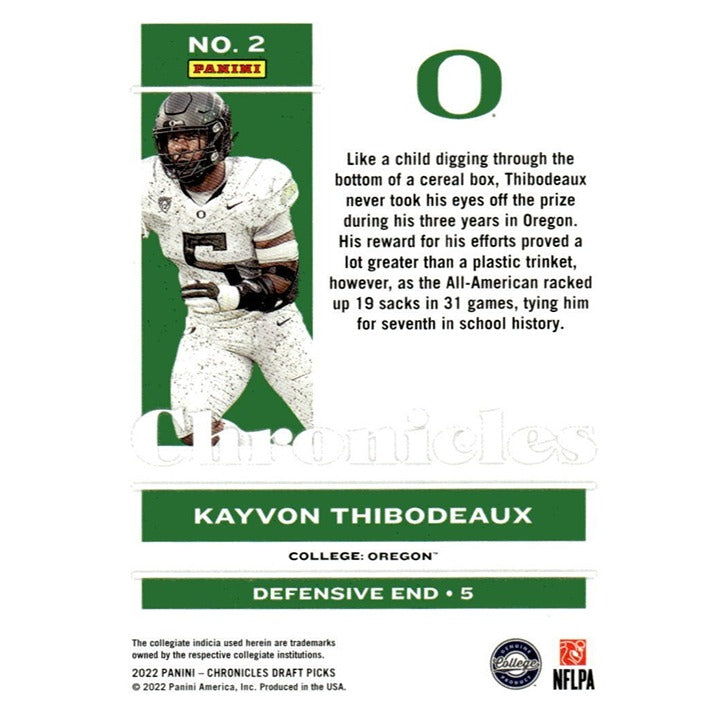 2022 Panini Chronicles Draft Picks Kayvon Thibodeaux NFL Ducks/NY Giants Card #2