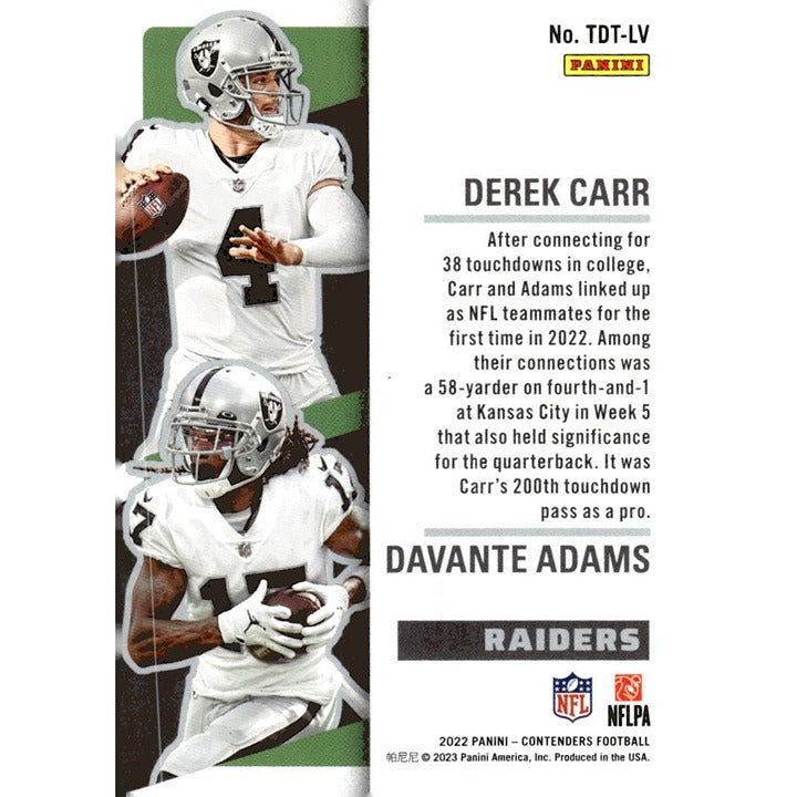 2022 Panini Contenders #TDT-LV Davante Adams / Derek Carr SN25 Touchdown Tandem*