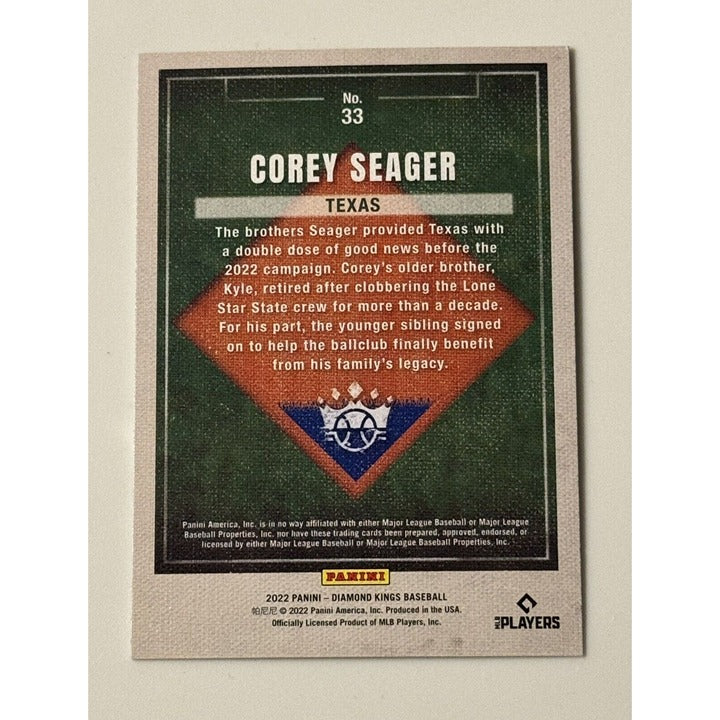 2022 Panini Diamond Kings Corey Seager MLB World Champion Texas Rangers Card #33
