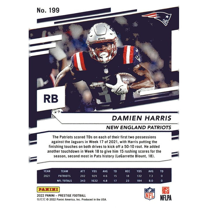 2022 Panini Prestige Damien Harris - NFL New England Patriots Football Card #199