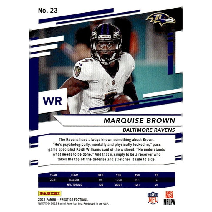 2022 Panini Prestige Marquise Brown* - NFL Baltimore Ravens/KC Chiefs - Card #23