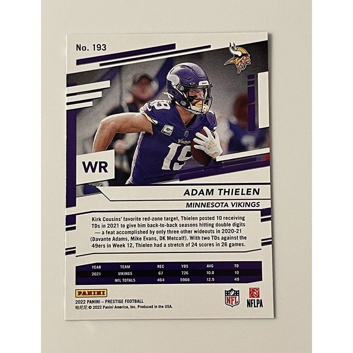 2022 Panini Prestige Xtra Points Adam Thielen* - NFL Vikings/Panthers Card #193