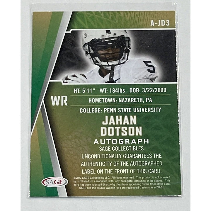 2022 Sage High Series Auto Gold Jahan Dotson NCAA Penn State Football Card A-JD3