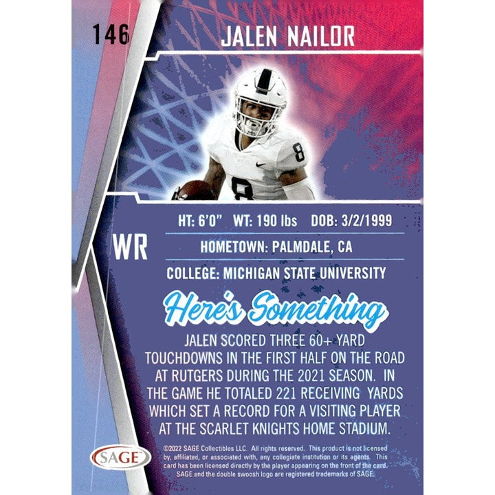 2022 SAGE High Series Football Card #146 Jalen Nailor RC* NFL Minnesota Vikings