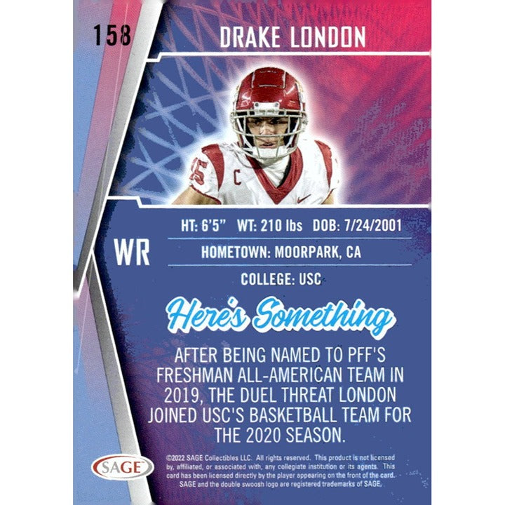 2022 SAGE High Series Football Card #158 Drake London RC Gold - NFL ATL Falcons