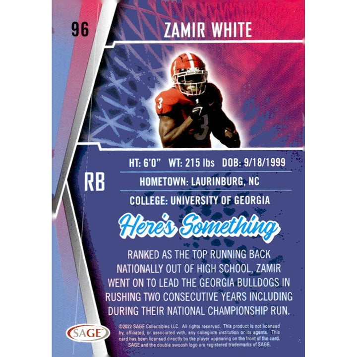 2022 SAGE High Series Football Card 96 Zamir White RC Red NFL Las Vegas Raiders