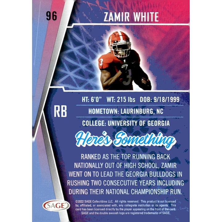 2022 SAGE High Series Football Card #96 Zamir White Red - NFL Las Vegas Raiders