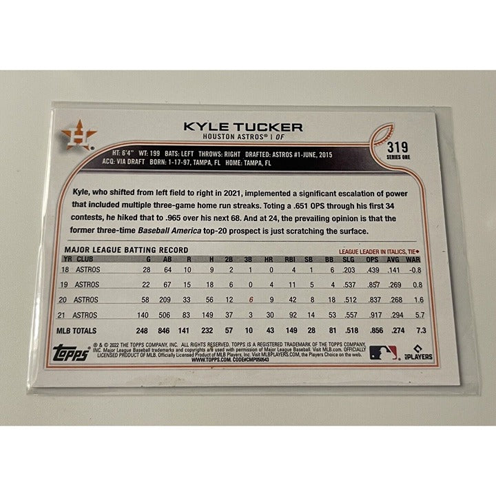 2022 Topps Baseball Kyle Tucker - MLB AL Houston Astros Baseball Card 319 Astros