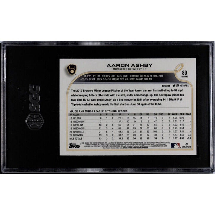 2022 Topps Chrome Aaron Ashby Rookie Card #80 Wave Refractor MLB Brewers SGC 9.5