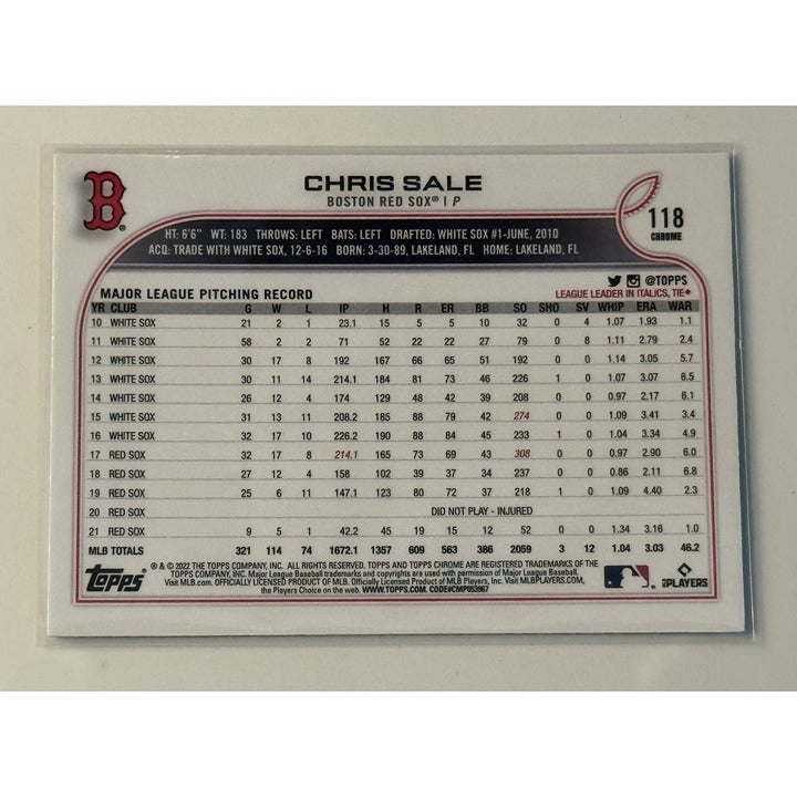 2022 Topps Chrome Chris Sale* MLB Atlanta Braves Card #118 - Near Mint or Better