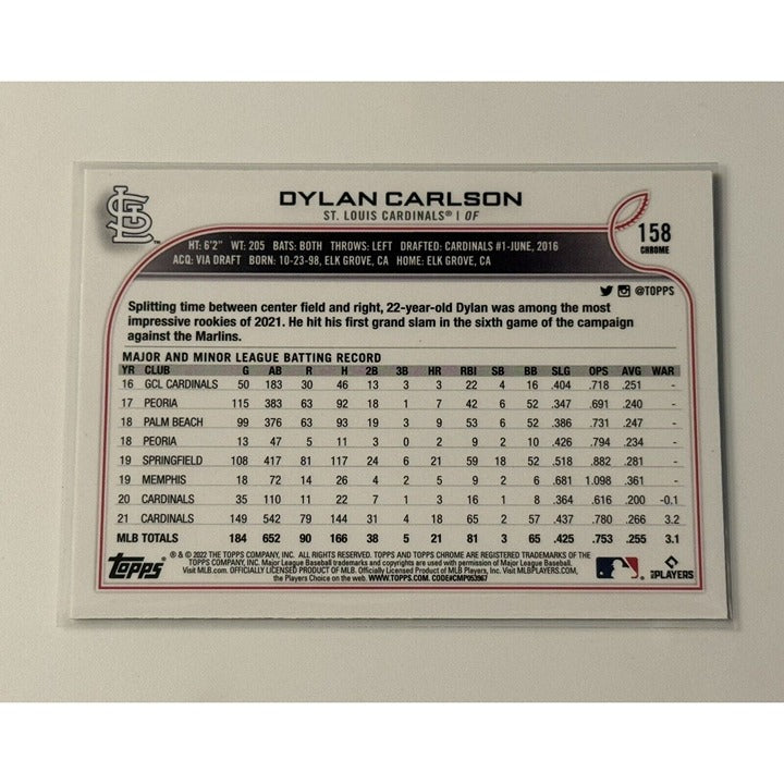 2022 Topps Chrome - DYLAN CARLSON RC - MLB St Louis Cardinals Baseball Card #158