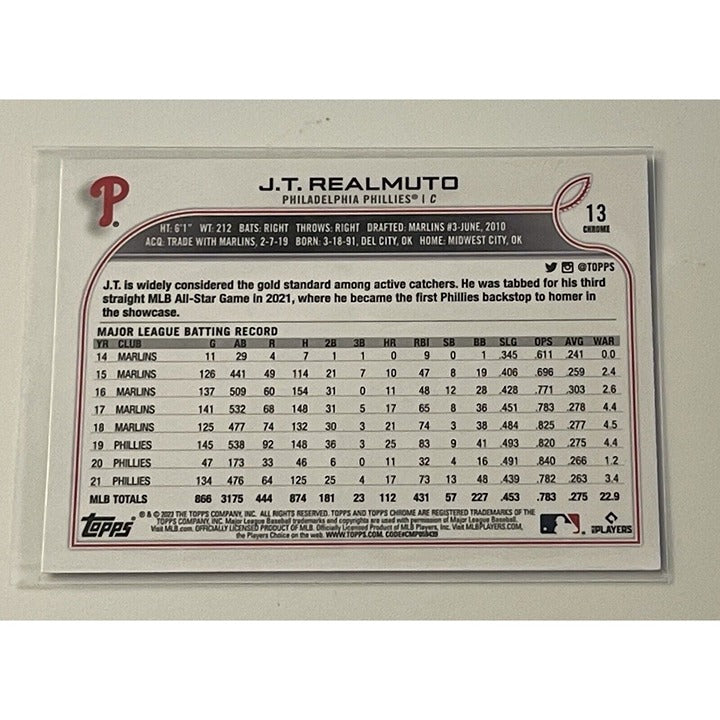 2022 Topps Chrome J.T. Realmuto - MLB Philadelphia Phillies - Baseball Card #13
