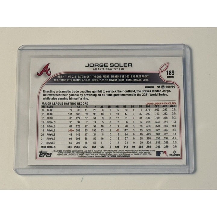 2022 Topps Chrome Jorge Soler Refractor card #189 - MLB Atlanta Braves Baseball