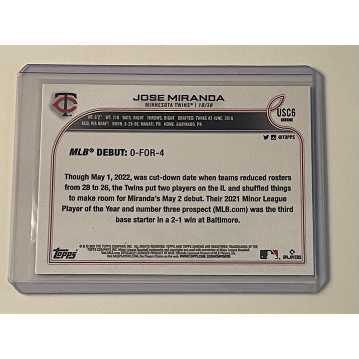 2022 Topps Chrome Update Jose Miranda RC MLB Minnesota Twins Baseball Card #USC6