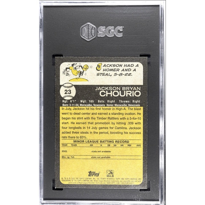 2022 Topps Heritage Minor League Edition Jackson Chourio RC* Brewers #23 SGC 9.5