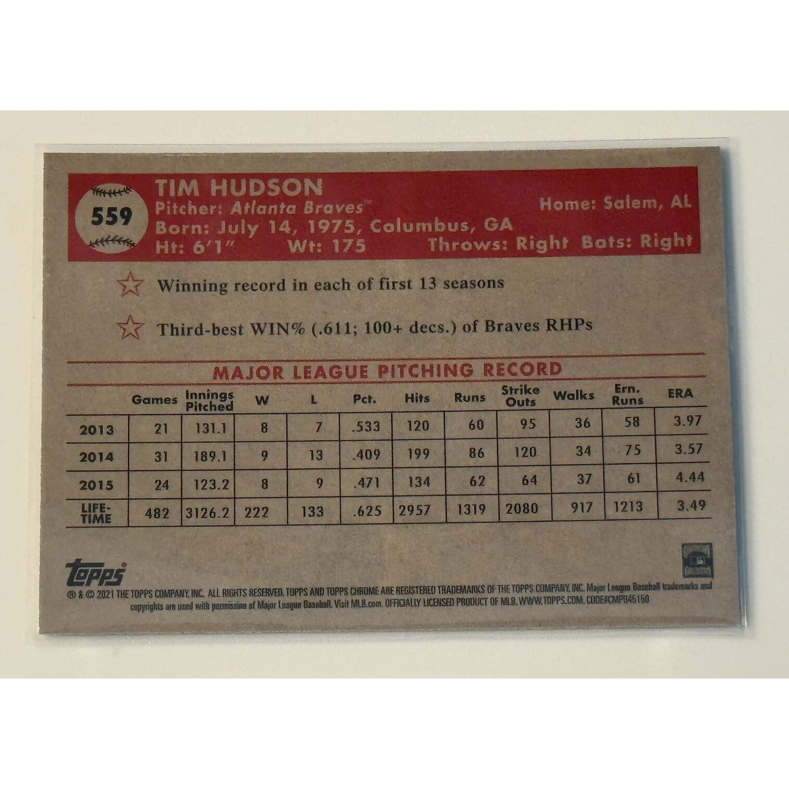 2022 Topps Platinum Anniversary #559 - Tim Hudson MLB Atlanta Braves - Near Mint