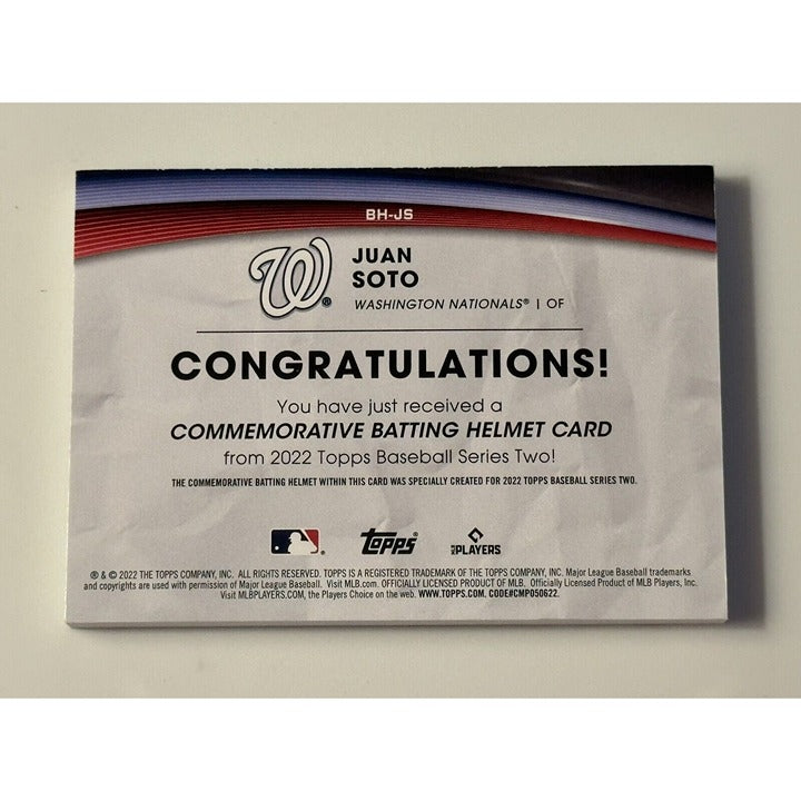 2022 Topps Series 2 Juan Soto - Commemorative Batting Helmet WNatl/Yankees BH-JS