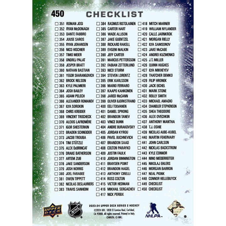 2023-24 Upper Deck Series 2 Update Box NHL Hockey Players Checklist - Card #450*