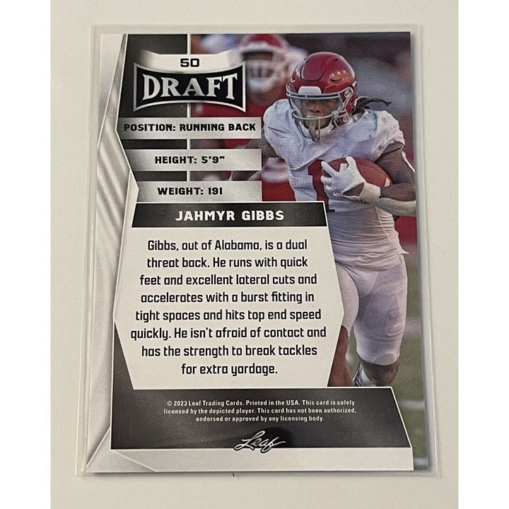 2023 Leaf Draft Blue Jahmyr Gibbs RC NFL NFC Lions/Bama Rookie Football Card #50