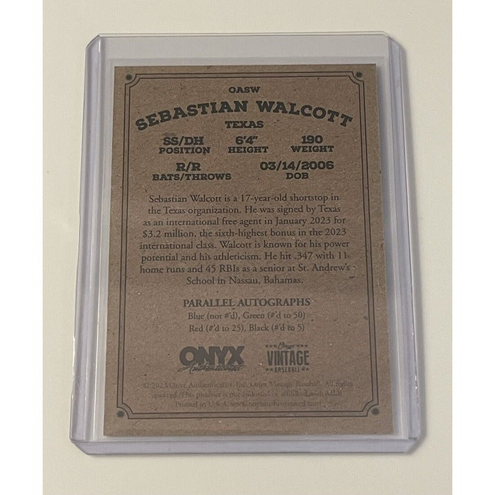 2023 Onyx Vintage Extended Baseball Sabastian Walcott Auto RC Blue Ink Texas MLB