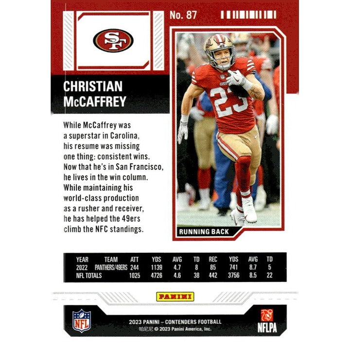 2023 Panini Contenders Christian McCaffrey Game Ticket Red NFL SF 49’s Card #87
