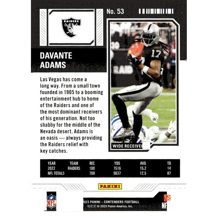 2023 Panini Contenders D'Vante Adams - NFL Las Vegas Raiders Football - Card #53