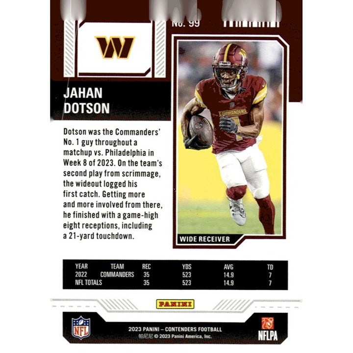 2023 Panini Contenders Football Card #99 Jahan Dotson* NFL Washington Commanders