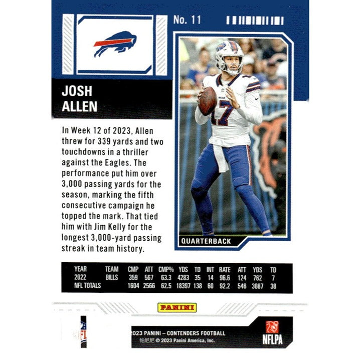 2023 Panini Contenders - Josh Allen Game Ticket BLUE* NFL Buffalo Bills Card #11