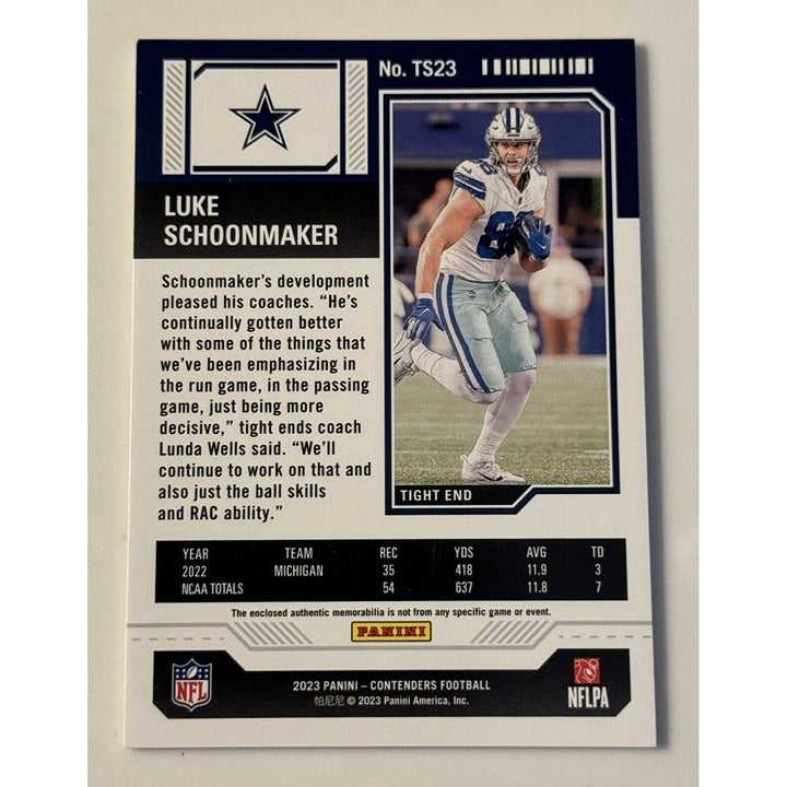 2023 Panini Contenders Rookie Ticket Luke Schoonmaker #TS23 Patch - NFL COWBOYS*