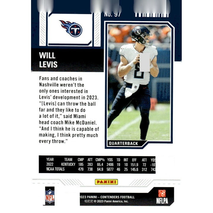 2023 Panini Contenders Will Levis Game Ticket Blue NFL Tennessee Titans Card #97