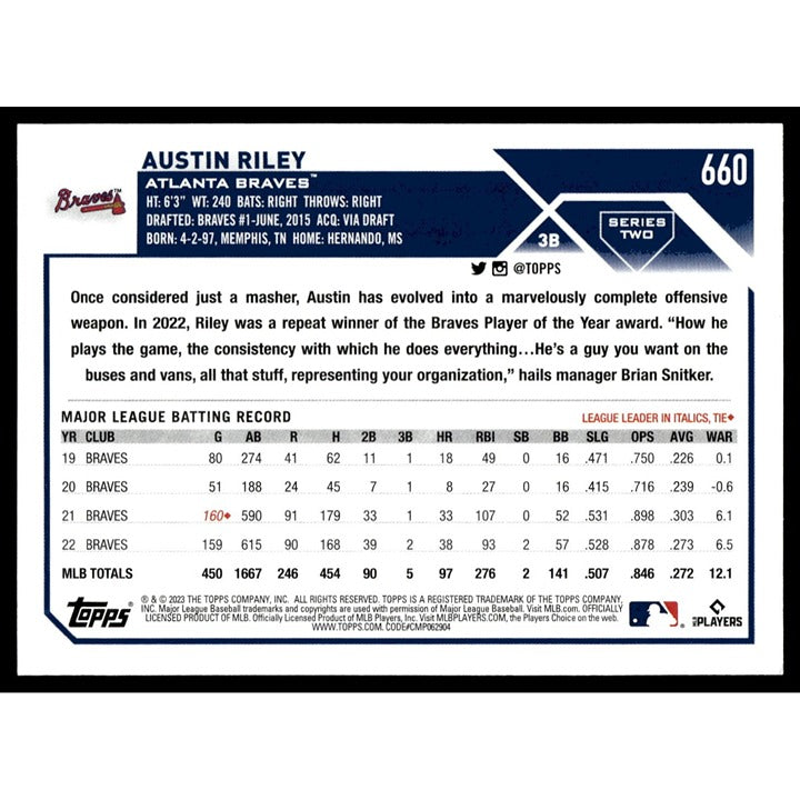 2023 Topps #660 Austin Riley* MLB Baseball Atlanta Braves Card Gold #/2023 Mint!
