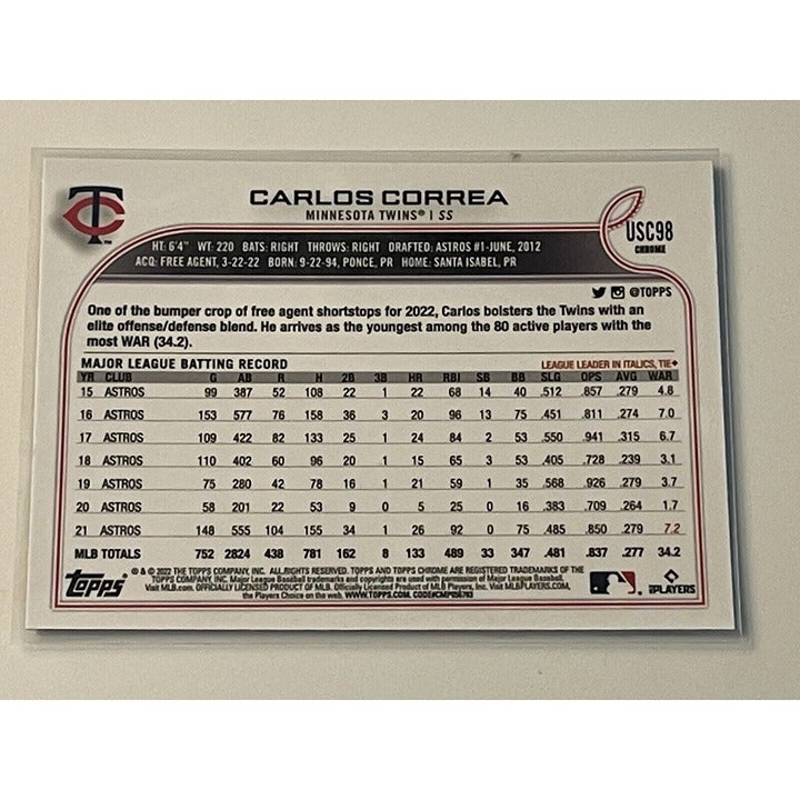 2023 Topps Chrome Carlos Correa Purple Refractor Card #USC98 MLB Minnesota Twins