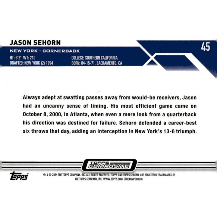 2023 Topps Composite NFL Football Jason Seahorn* - DB New York Giants - Card #45