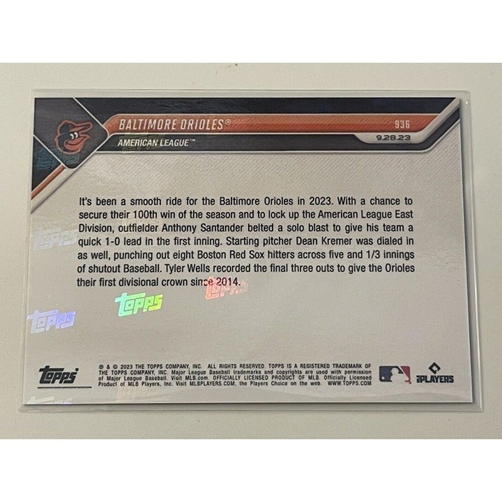 2023 Topps Now #936 MLB Baltimore Orioles Clinch AL East 100 Wins - Limited Card