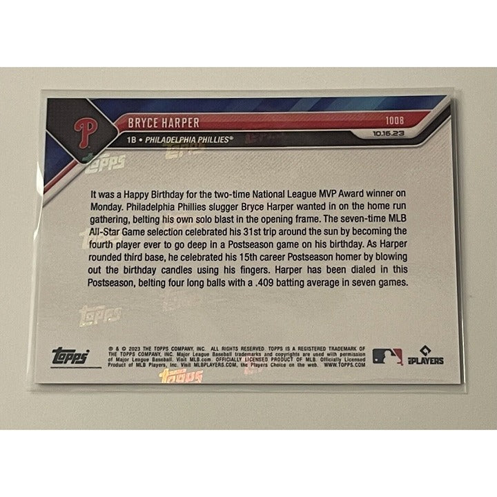 2023 Topps NOW Bryce Harper* 8/49 Red Parallel Card #1008 SSP Phillies NLCS Card