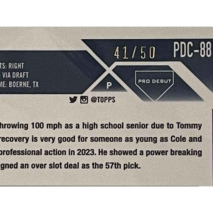 2023 Topps Pro Debut Chrome 41/50 Cole Phillips Refractor Card PDC-88 FCL Braves