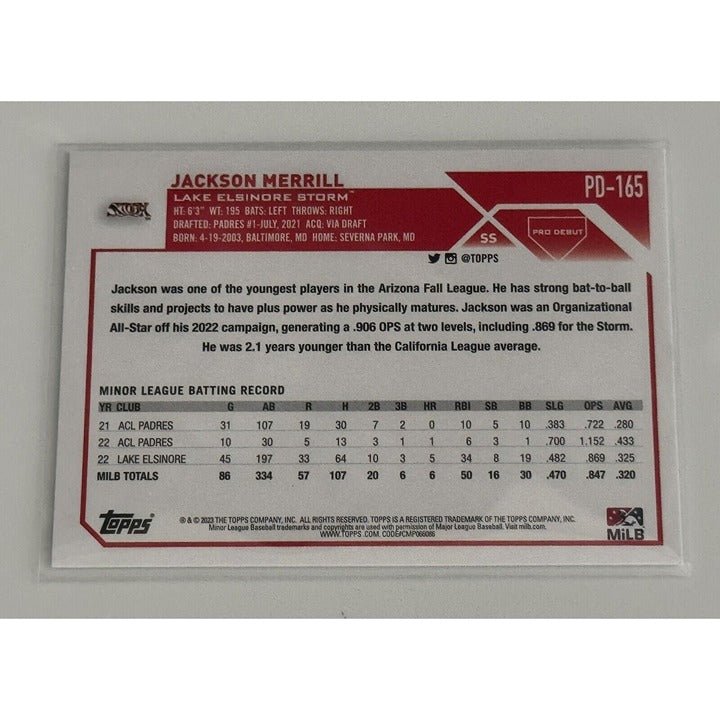 2023 Topps Pro Debut Jackson* RC Merrill Rookie Card #PD-165 Lake Elsinore Storm