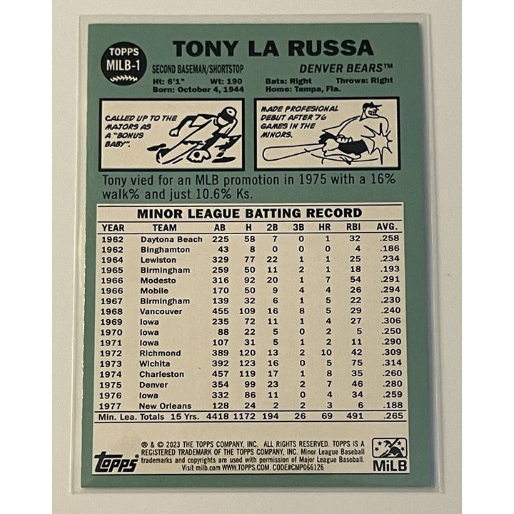 2023 Topps Pro Debut MiLB Legends Tony LA Russa - Denver Bears #MILB-1 Baseball