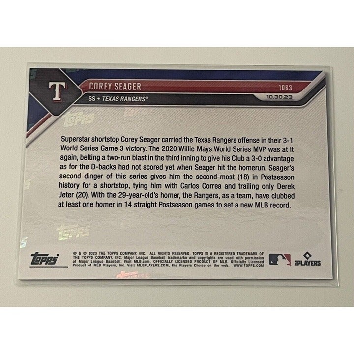 2023 ToppsNOW 9/25 Corey Seager Home Run World Series Game 3 - MLB Rangers #1063