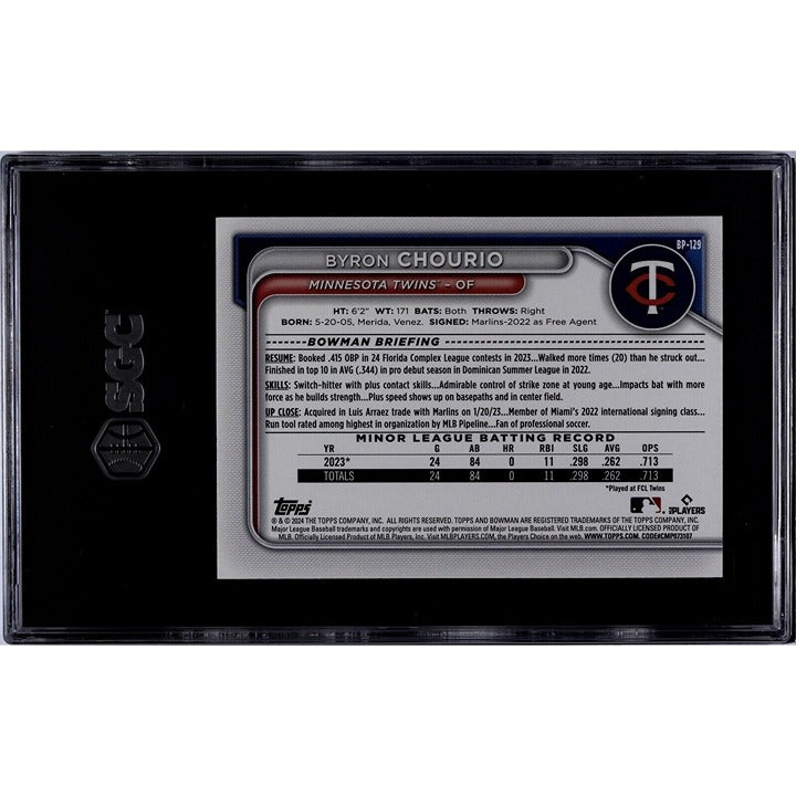 2024 Bowman Chrome 1st Byron Chourio RC Blue REFRACTOR 216/499 MLB Twins SGC 10